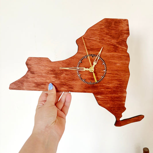Wooden modern clock - New York - state -cherry wood color - 360 mm - 14.2 inches - handmade clock - Silent clock mechanism