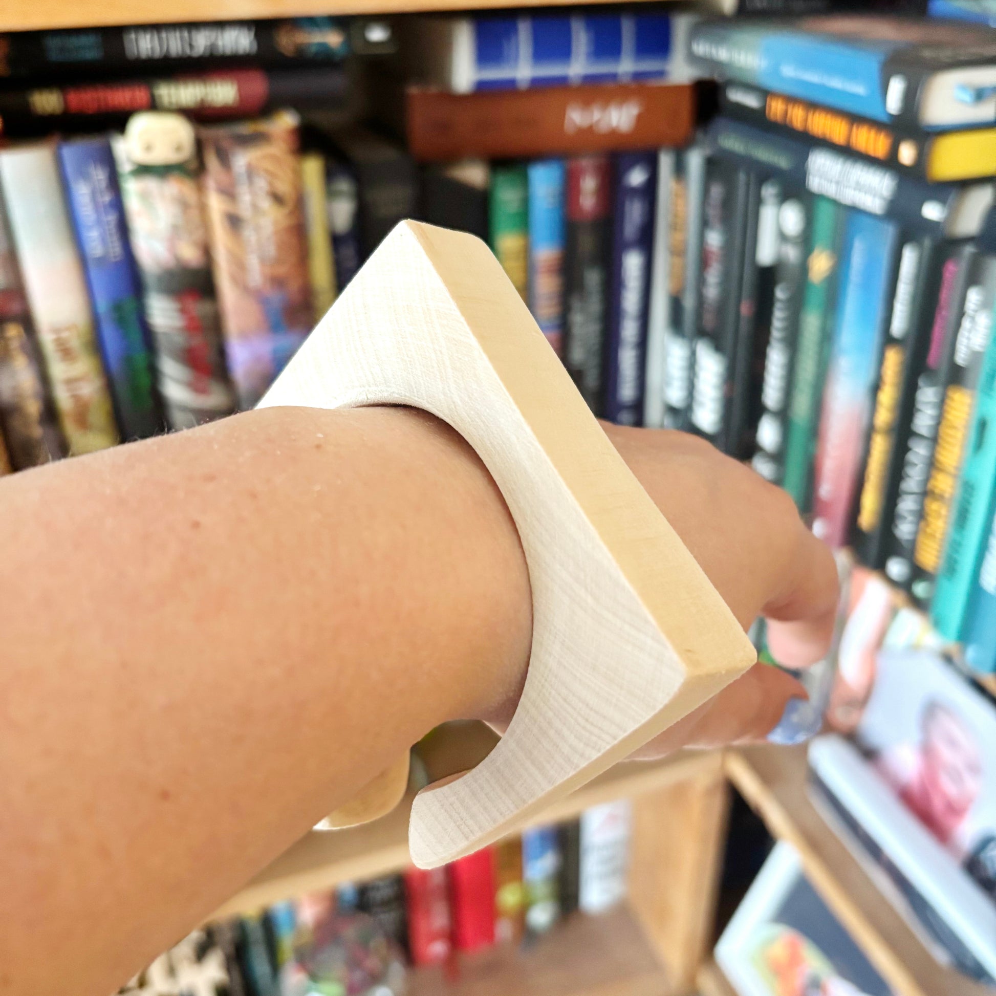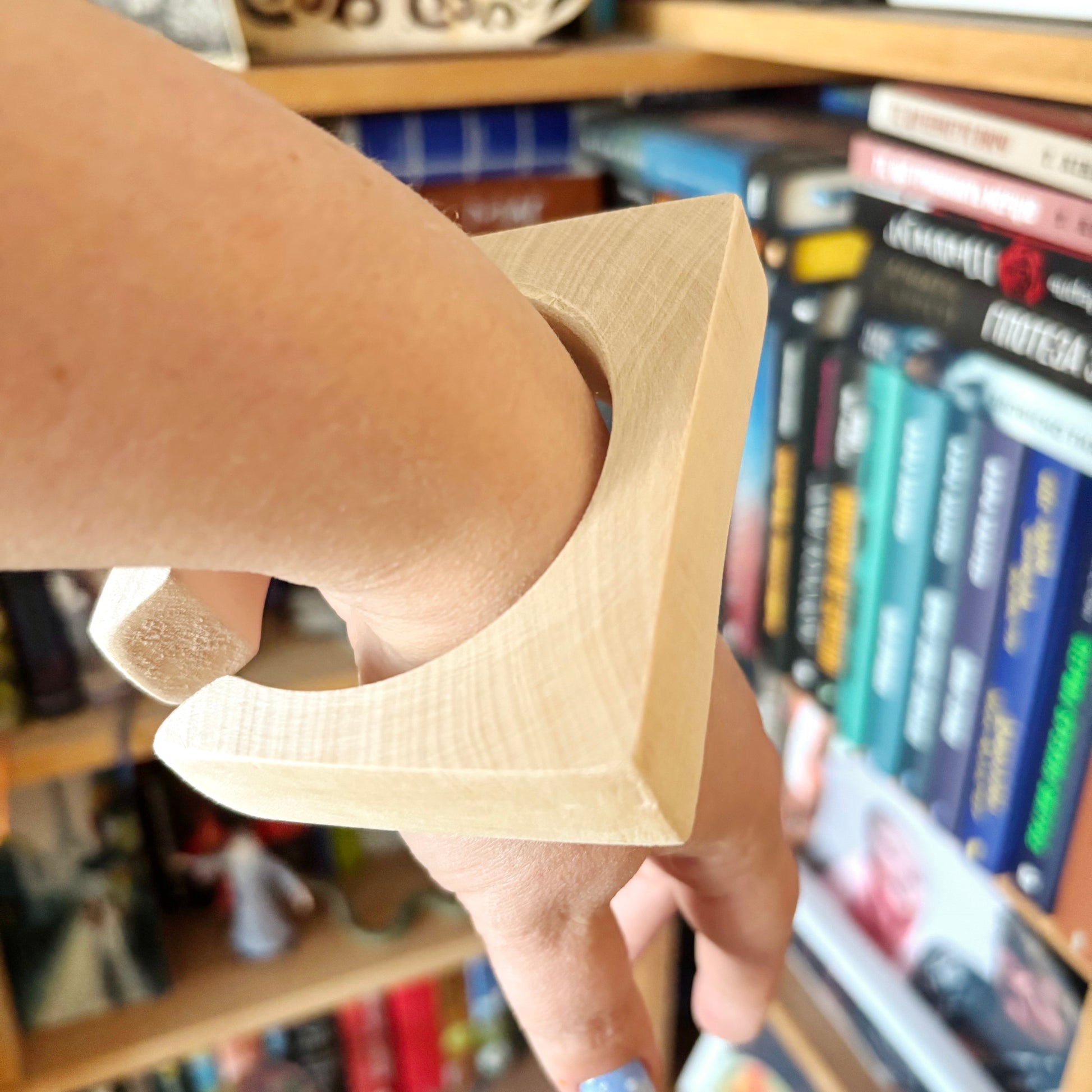 This handmade bracelet is crafted from natural linden wood (basswood), giving it a light, smooth, and warm feel on the skin. Its bold geometric square shape makes it a true statement accessory — minimalist yet eye-catching.
