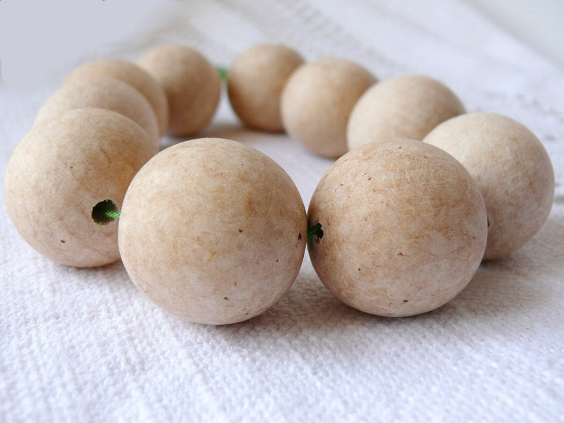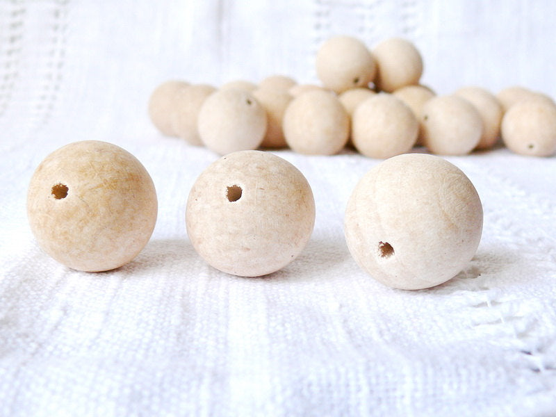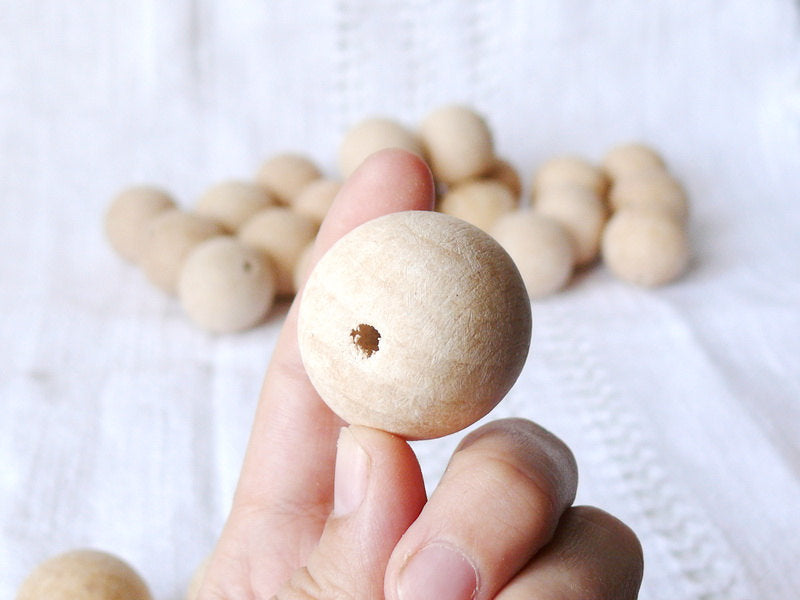 A pack of 25 unfinished round wooden beads 30mm with 5 mm hole. They are made of carpathian beech wood