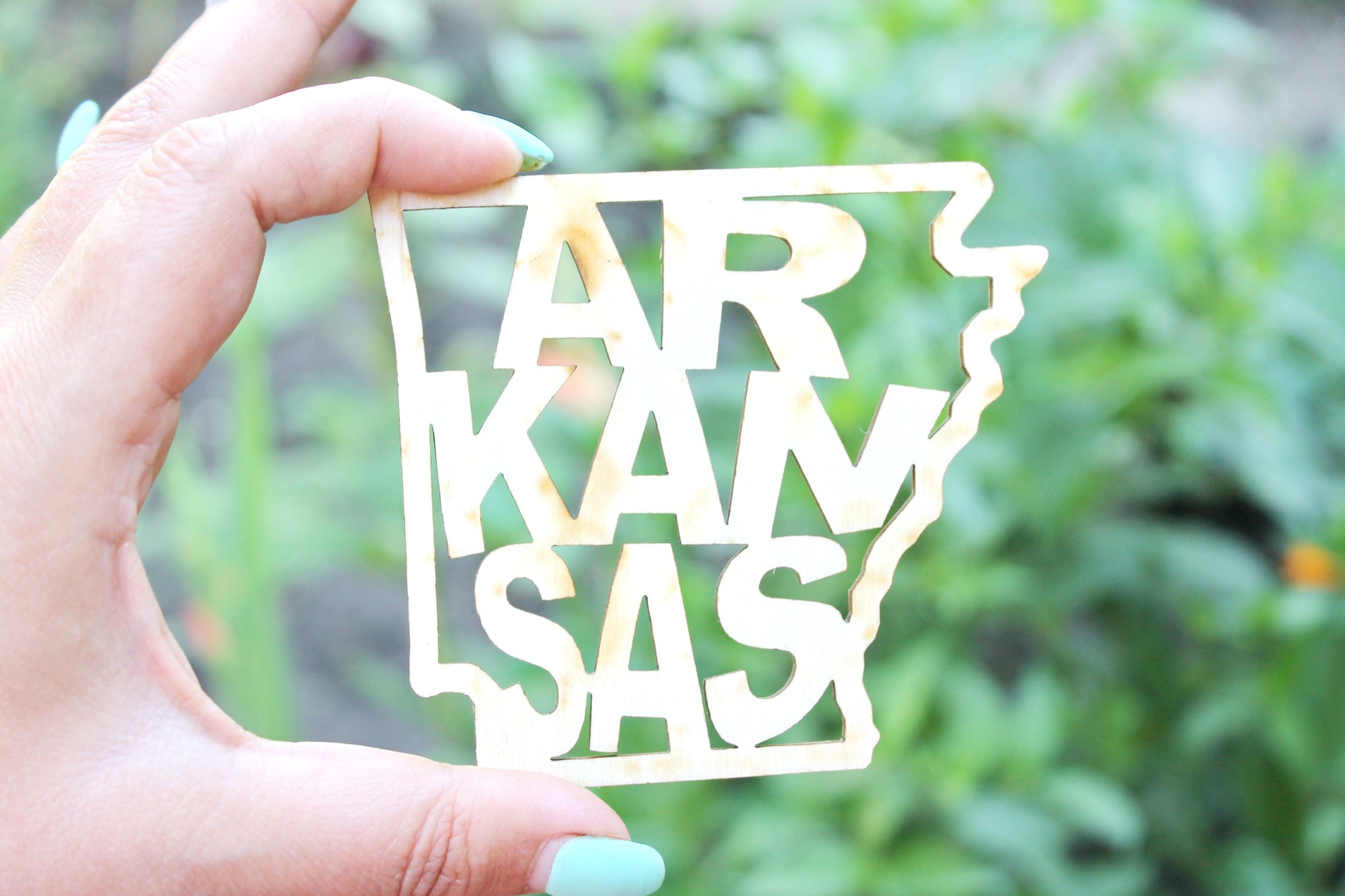 Arkansas state inscription - Laser Cut - unfinished blank-3.3 inches - Arkansas Map Shape Text, Pattern, Stencil, Outline