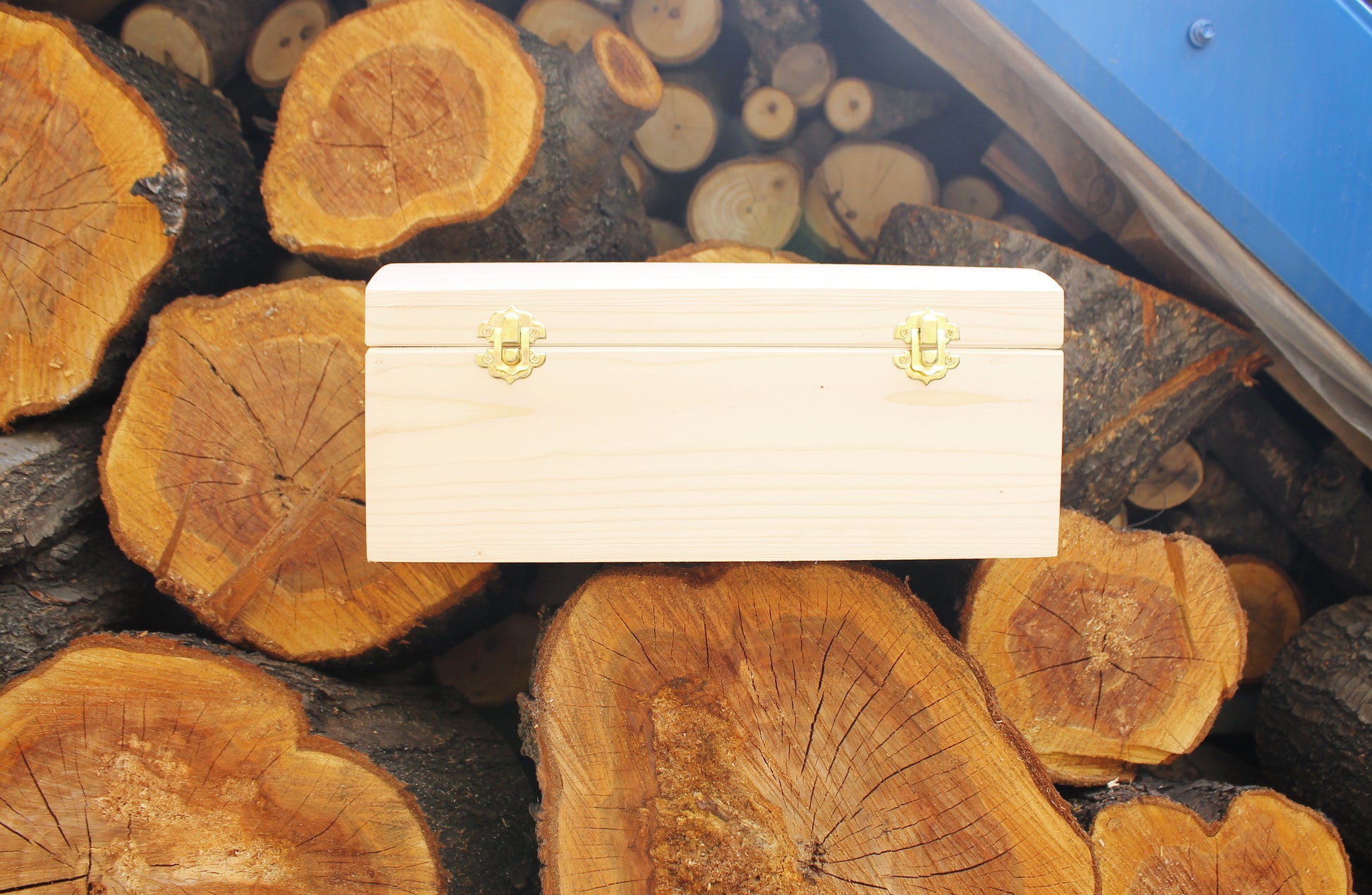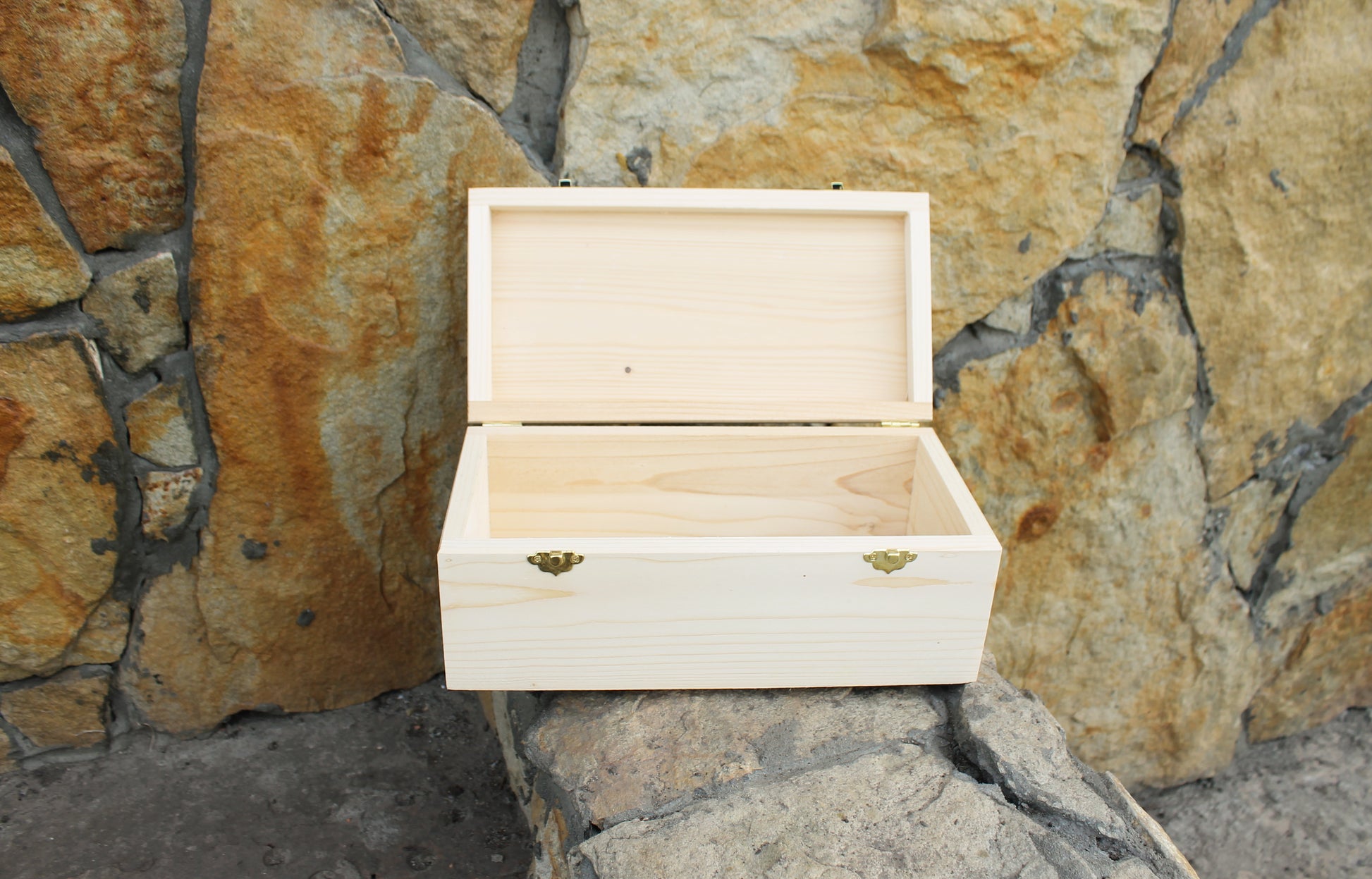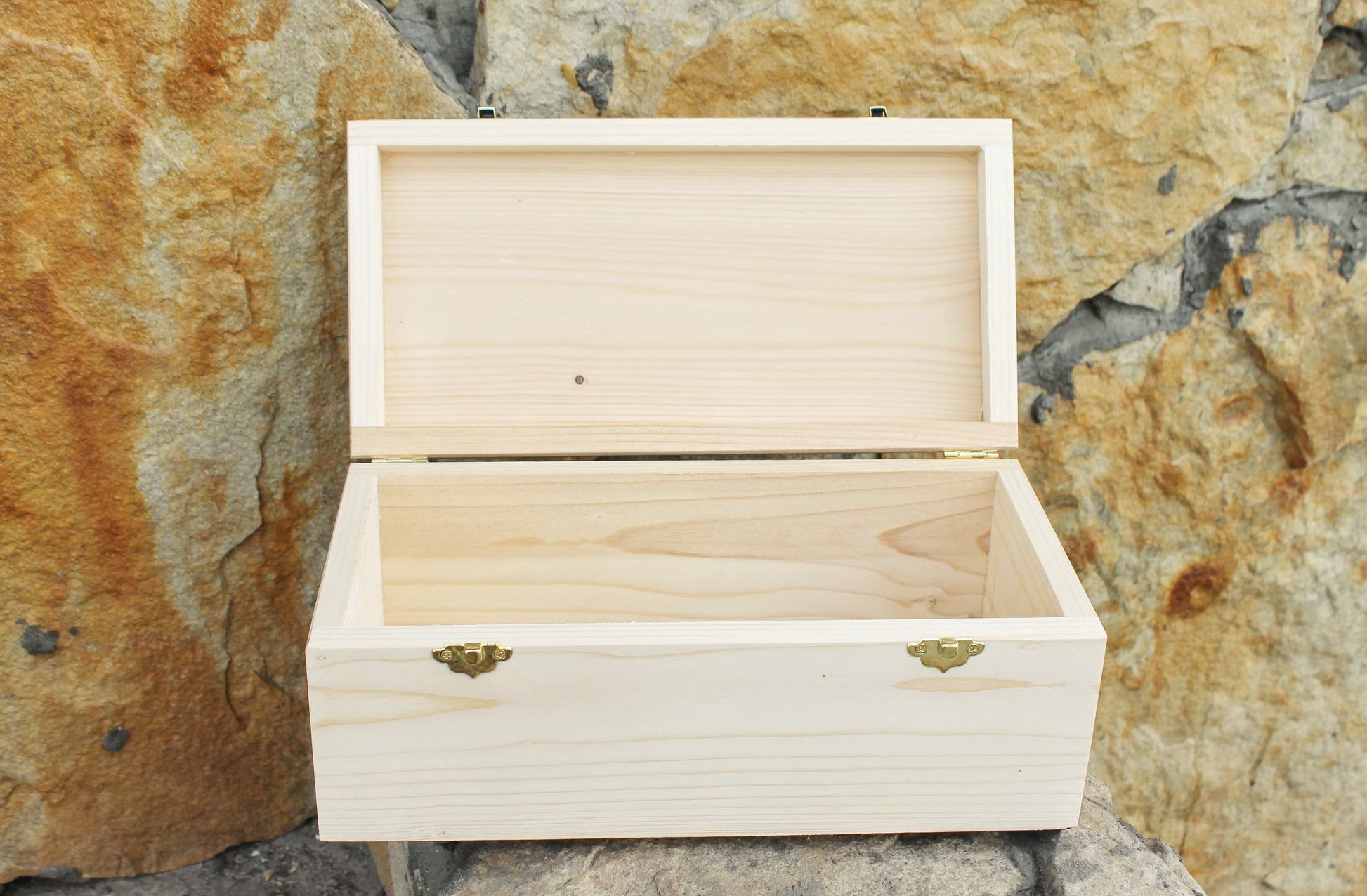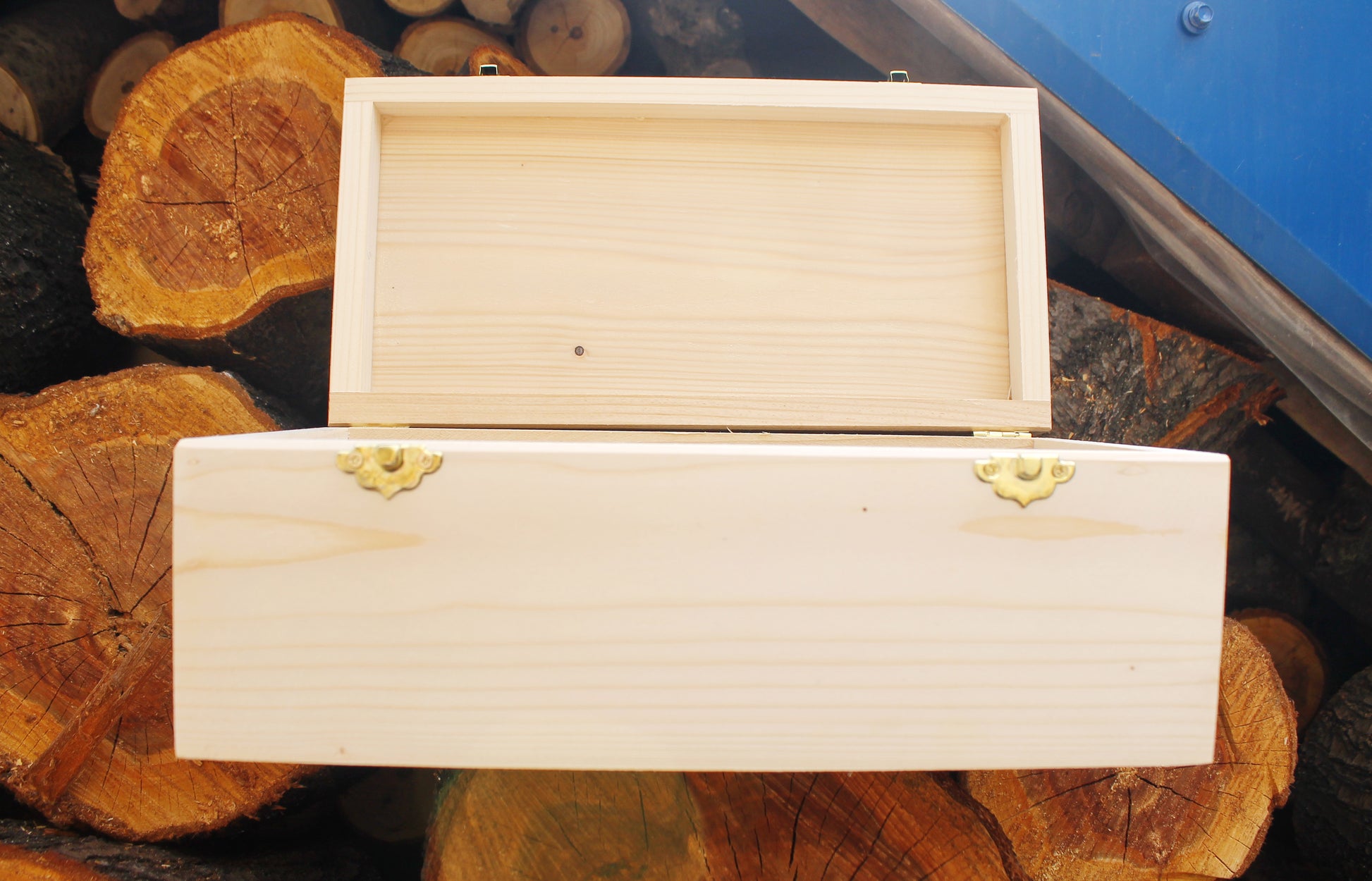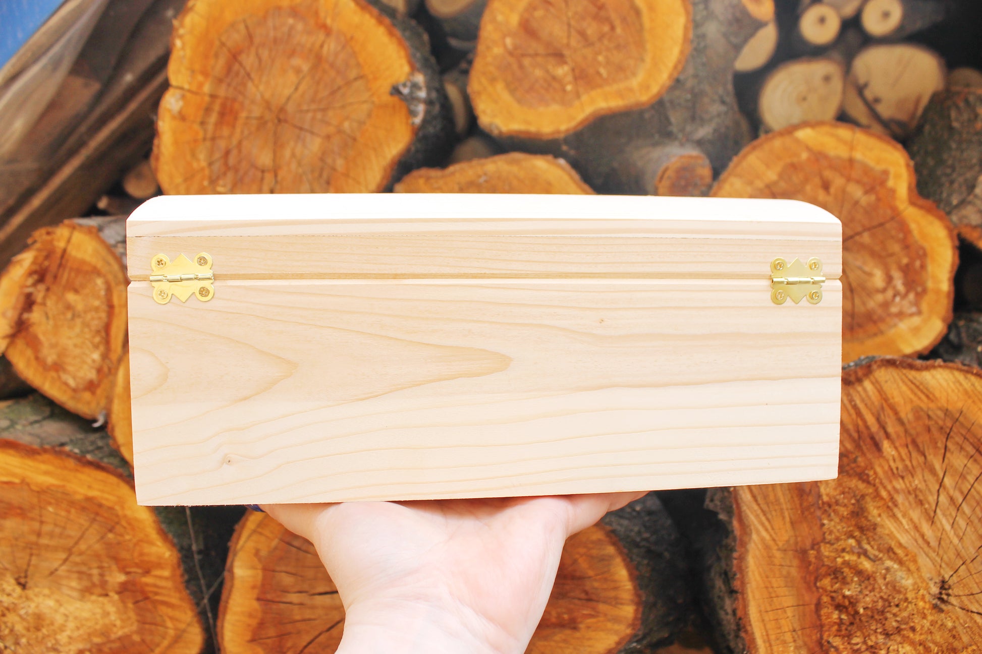 Big wooden rectangular box - unfinished wooden box - 300 mm - 11.6 inch - with lid on hinges - spruce wood