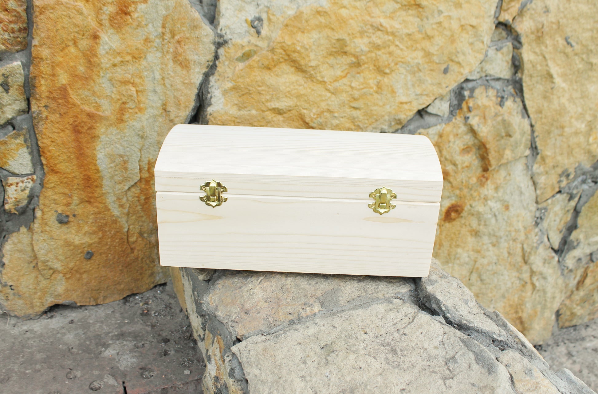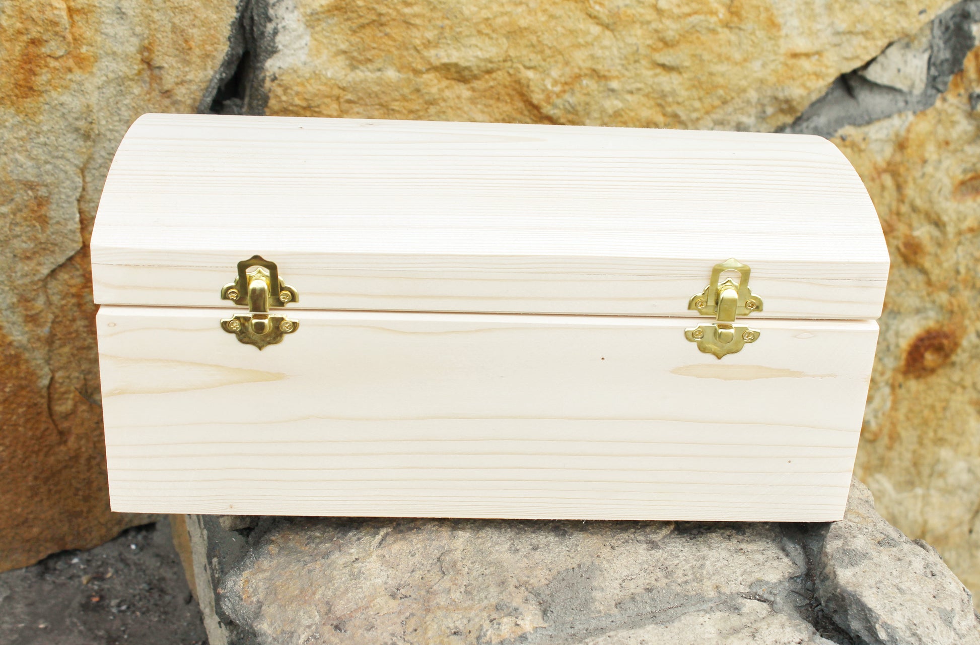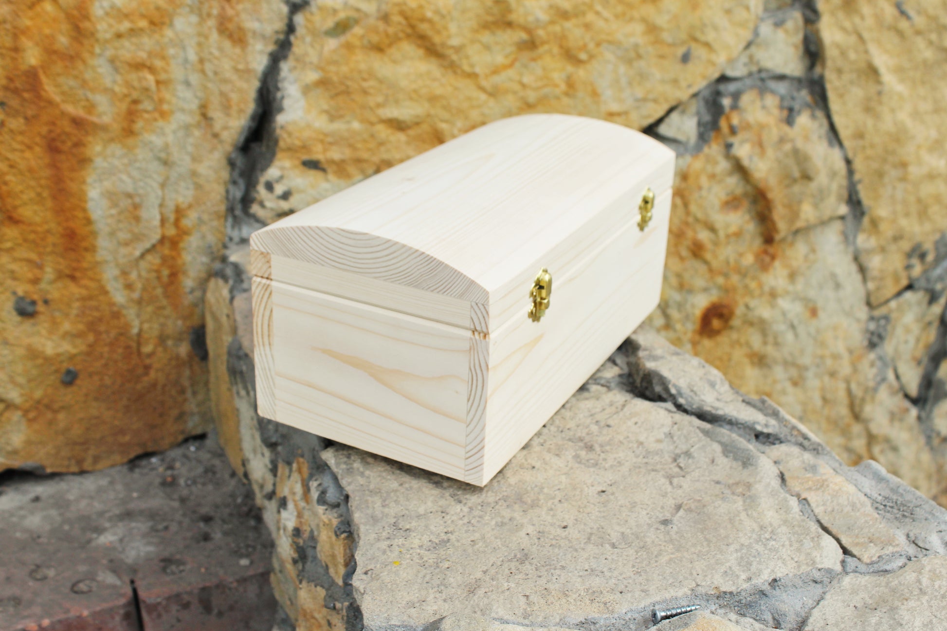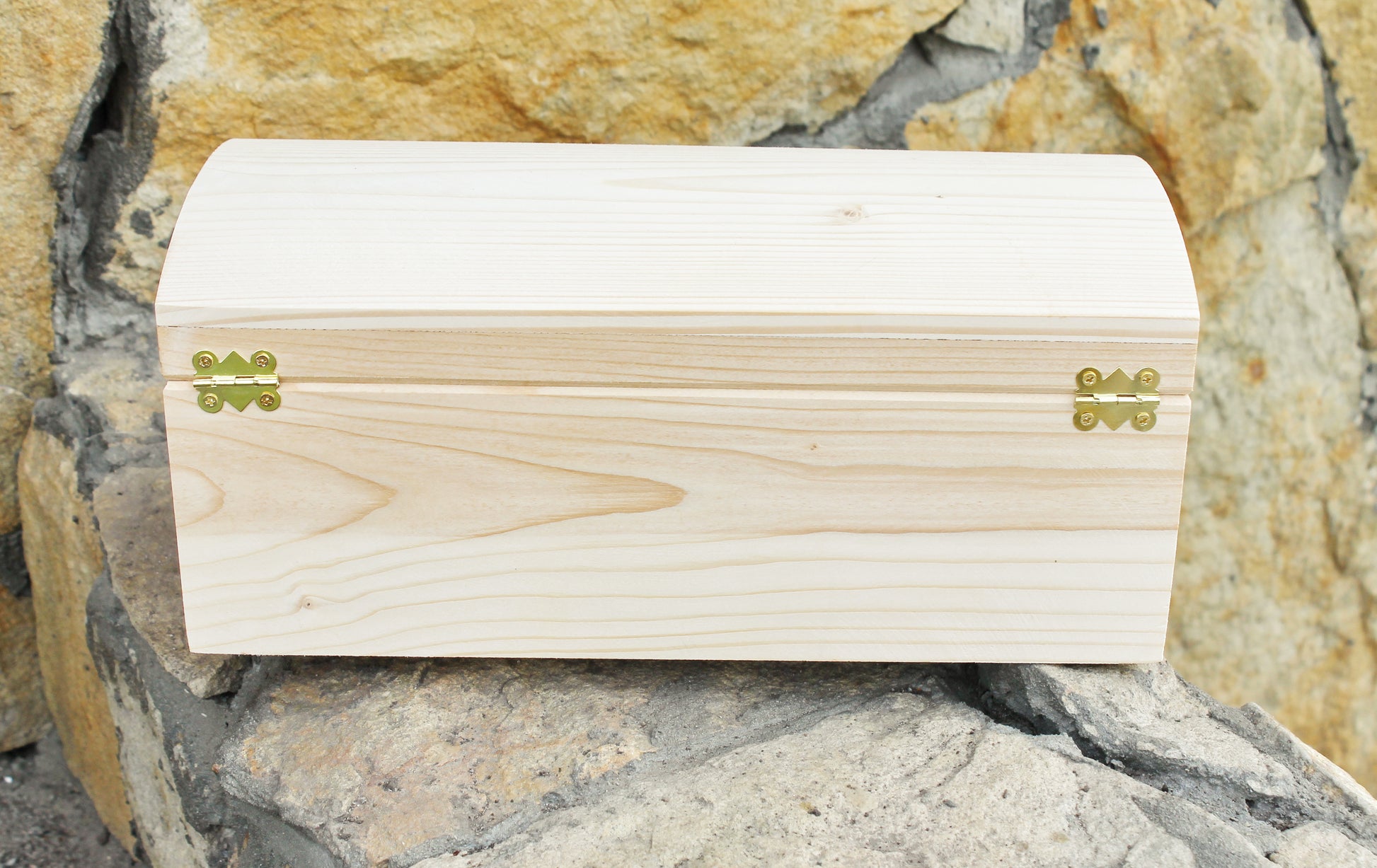 Big wooden box (chest) - rounded lid - unfinished wooden box - 300 mm - 11.6 inch - with lid on hinges and on the lock - spruce wood