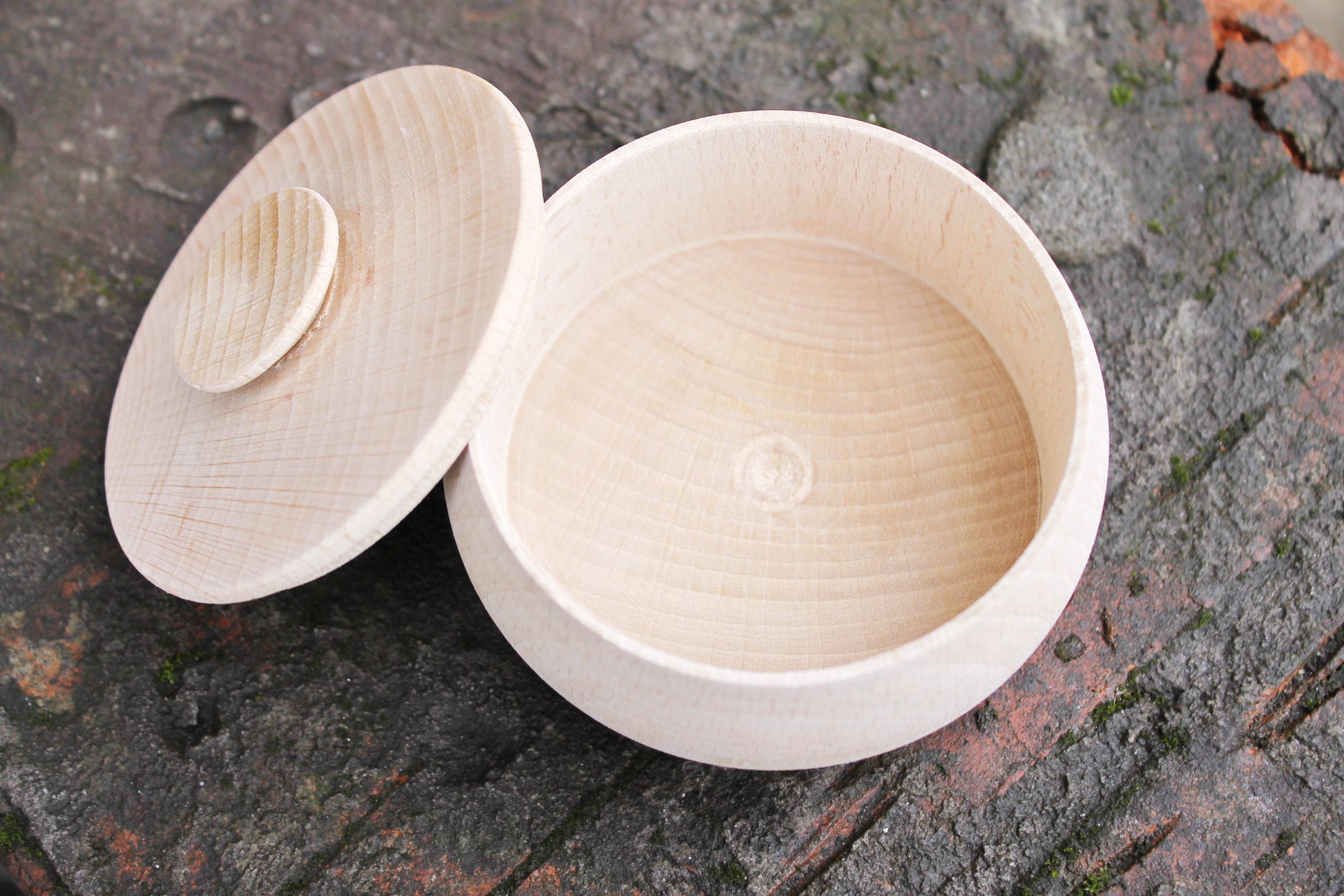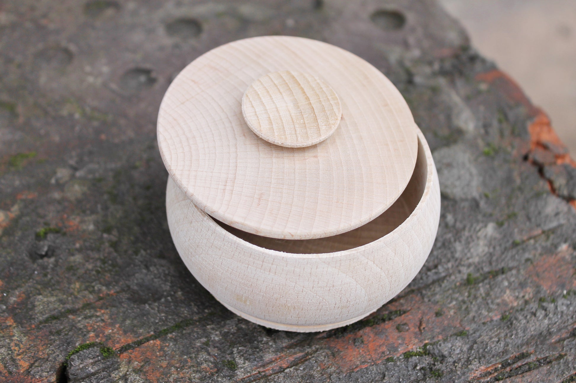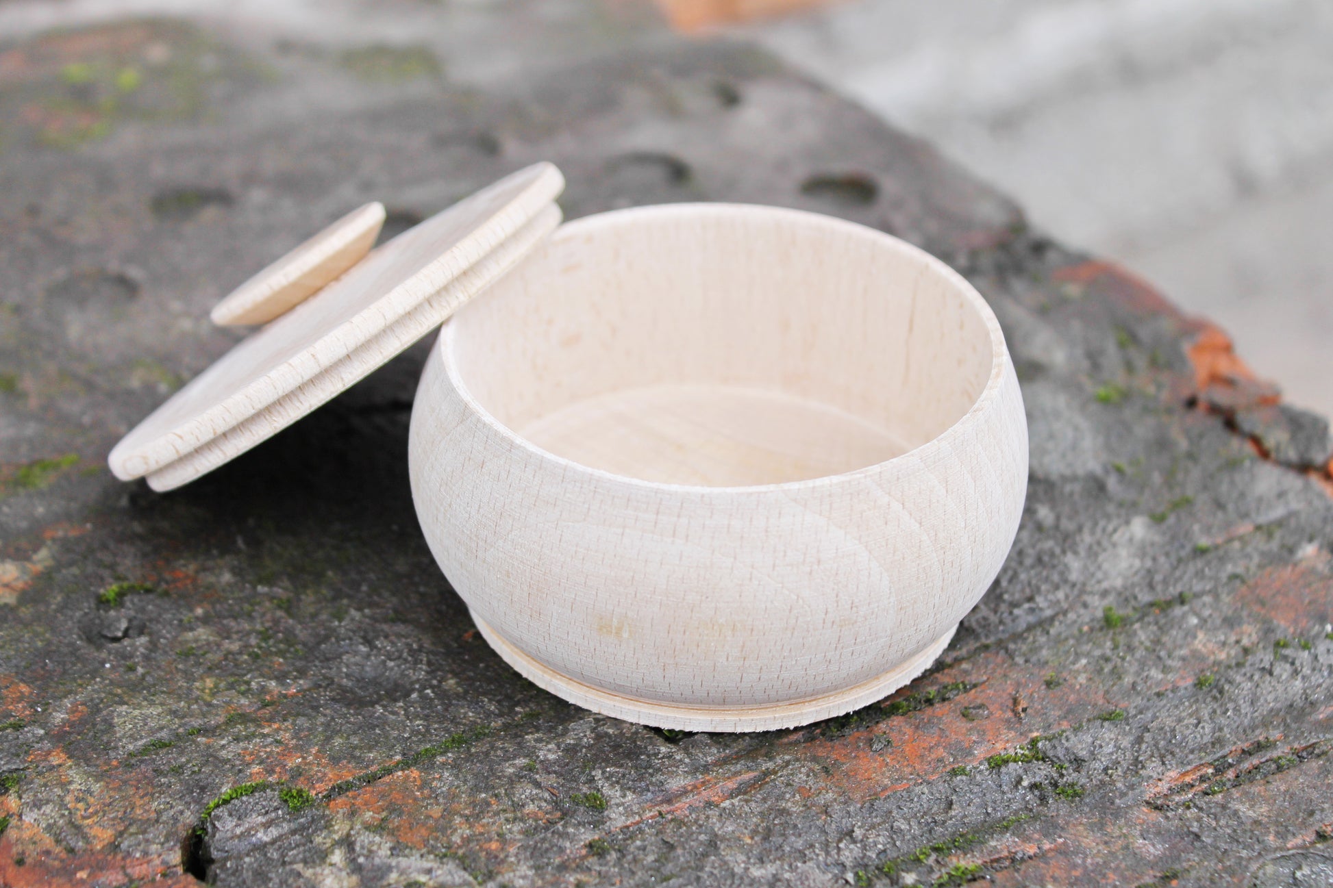 Box, barrel, keg made of beech wood - 95 mm (3.7 inch) round unfinished wooden box - with lid - natural, eco friendly beech wood