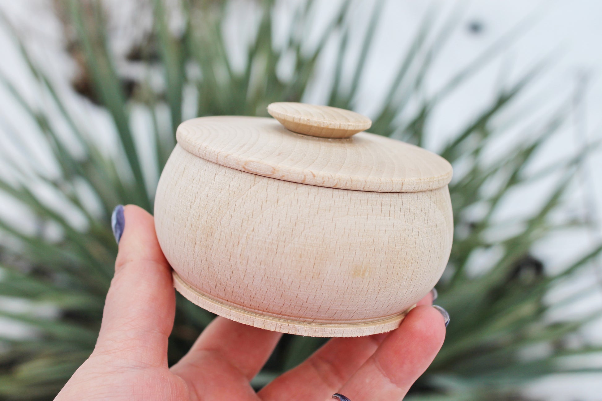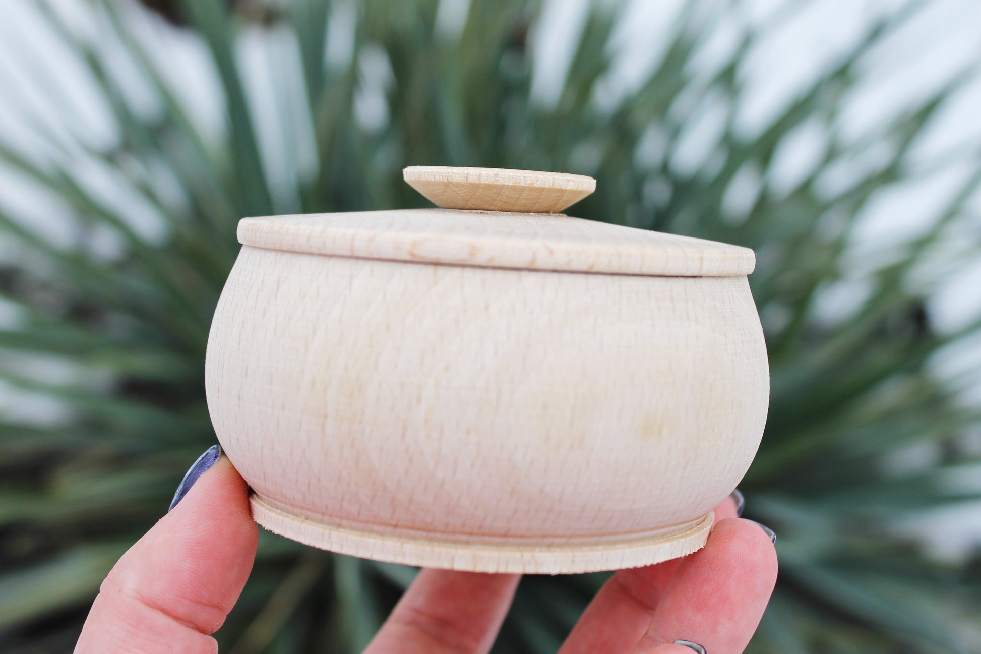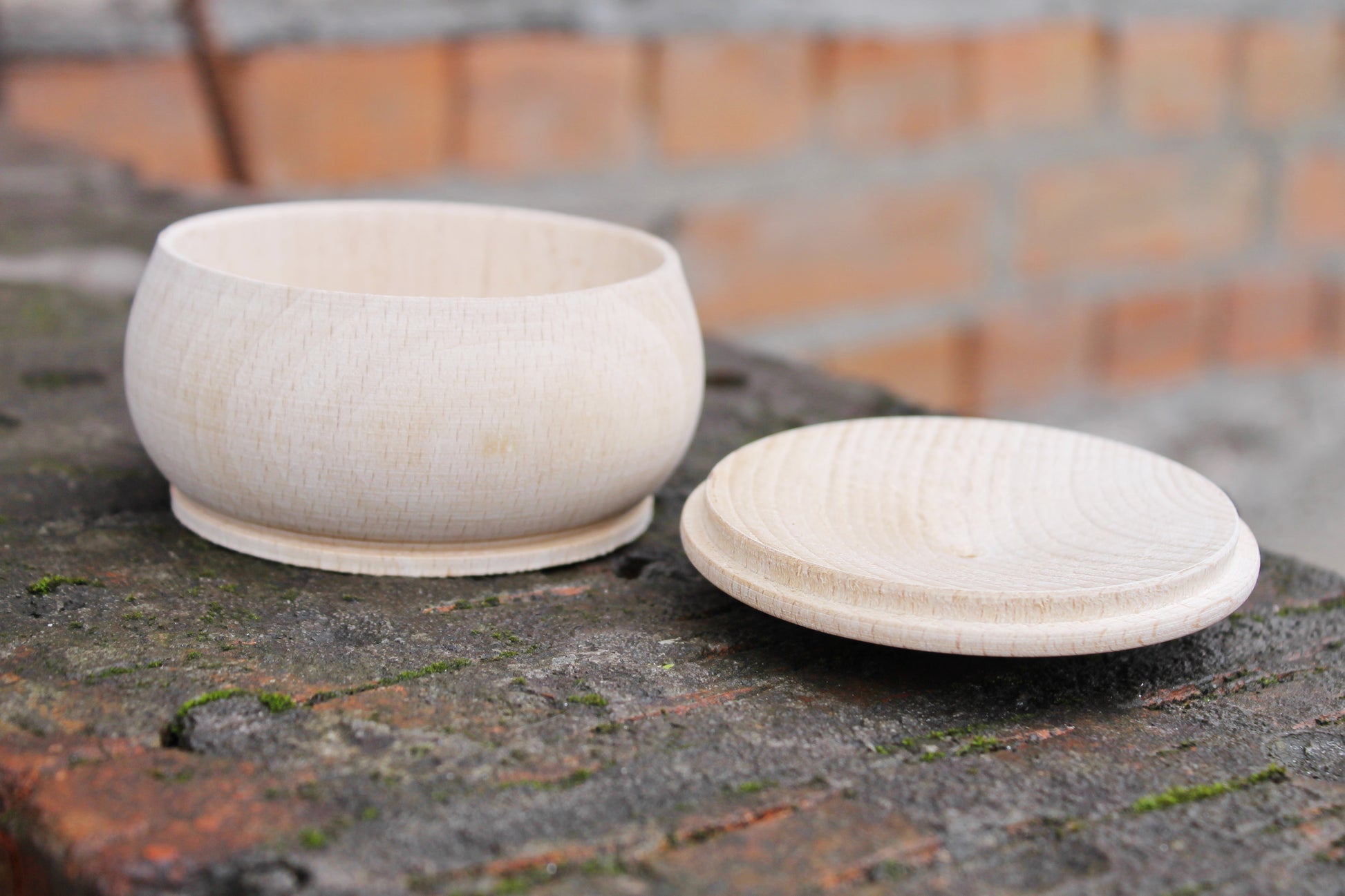 Box, barrel, keg made of beech wood - 95 mm (3.7 inch) round unfinished wooden box - with lid - natural, eco friendly beech wood