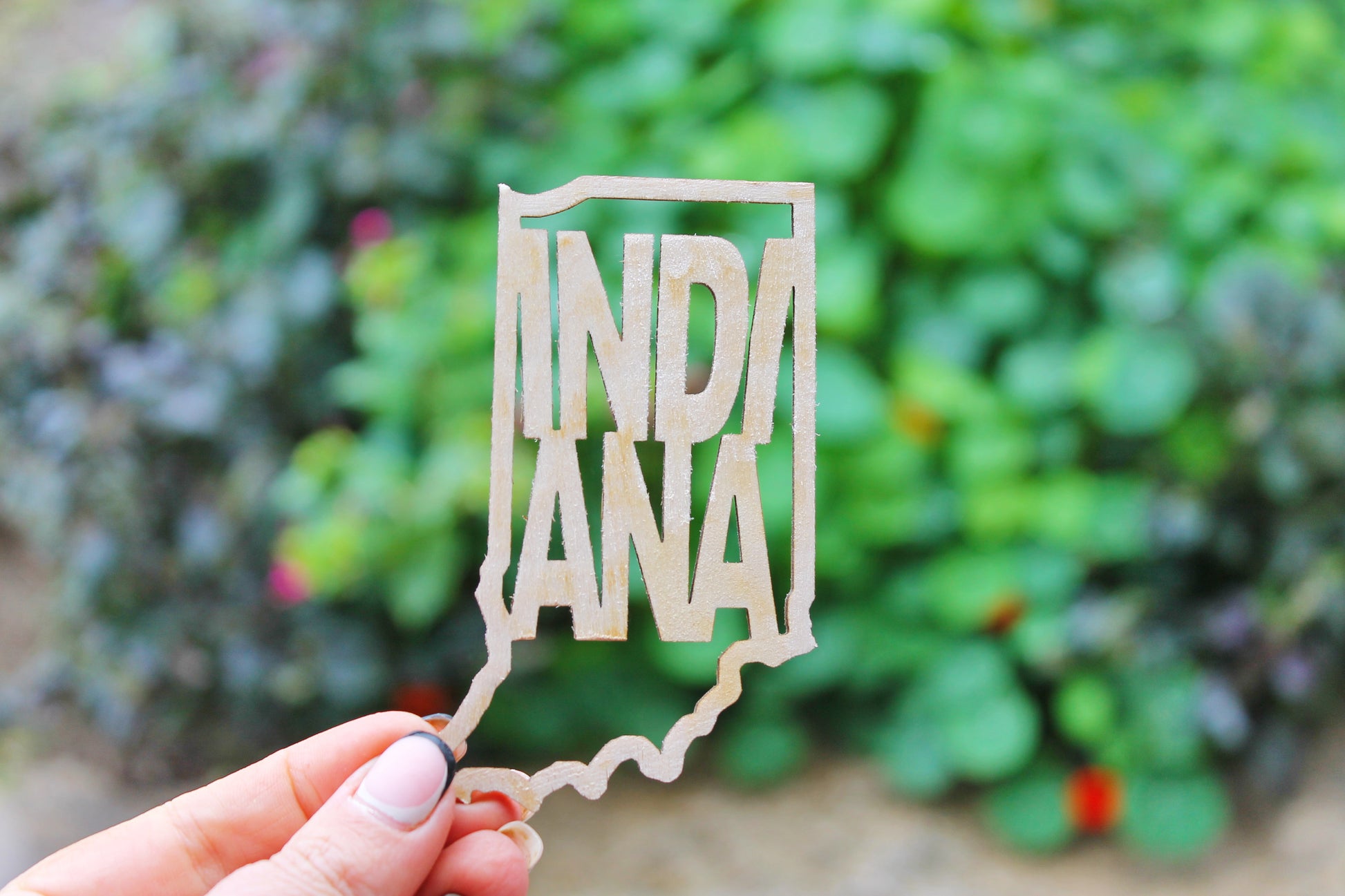 Indiana state inscription - Laser Cut - unfinished blank - 4 inches - Indiana Map Shape Text, Pattern, Stencil, Outline