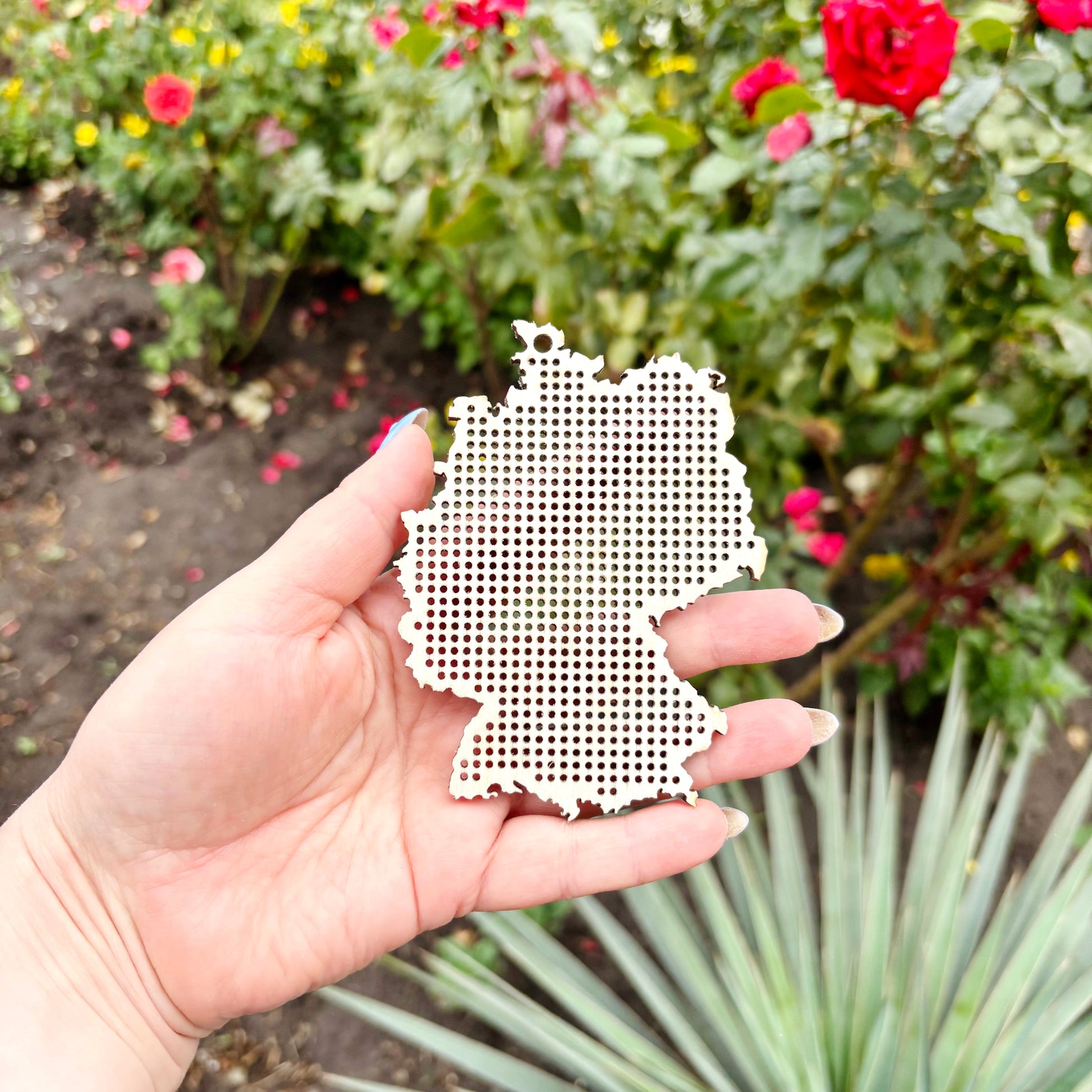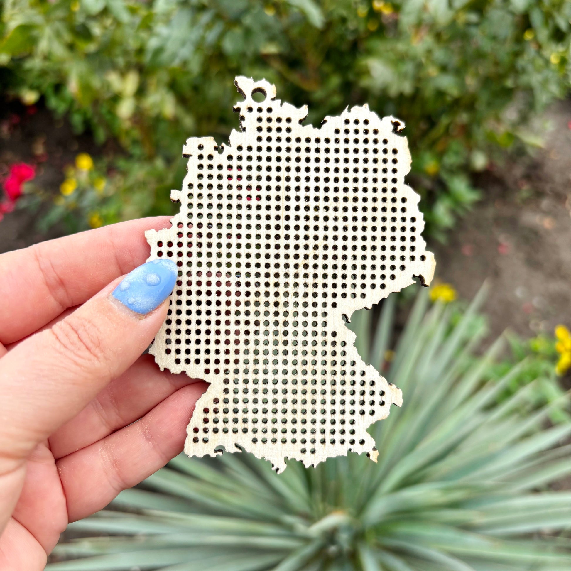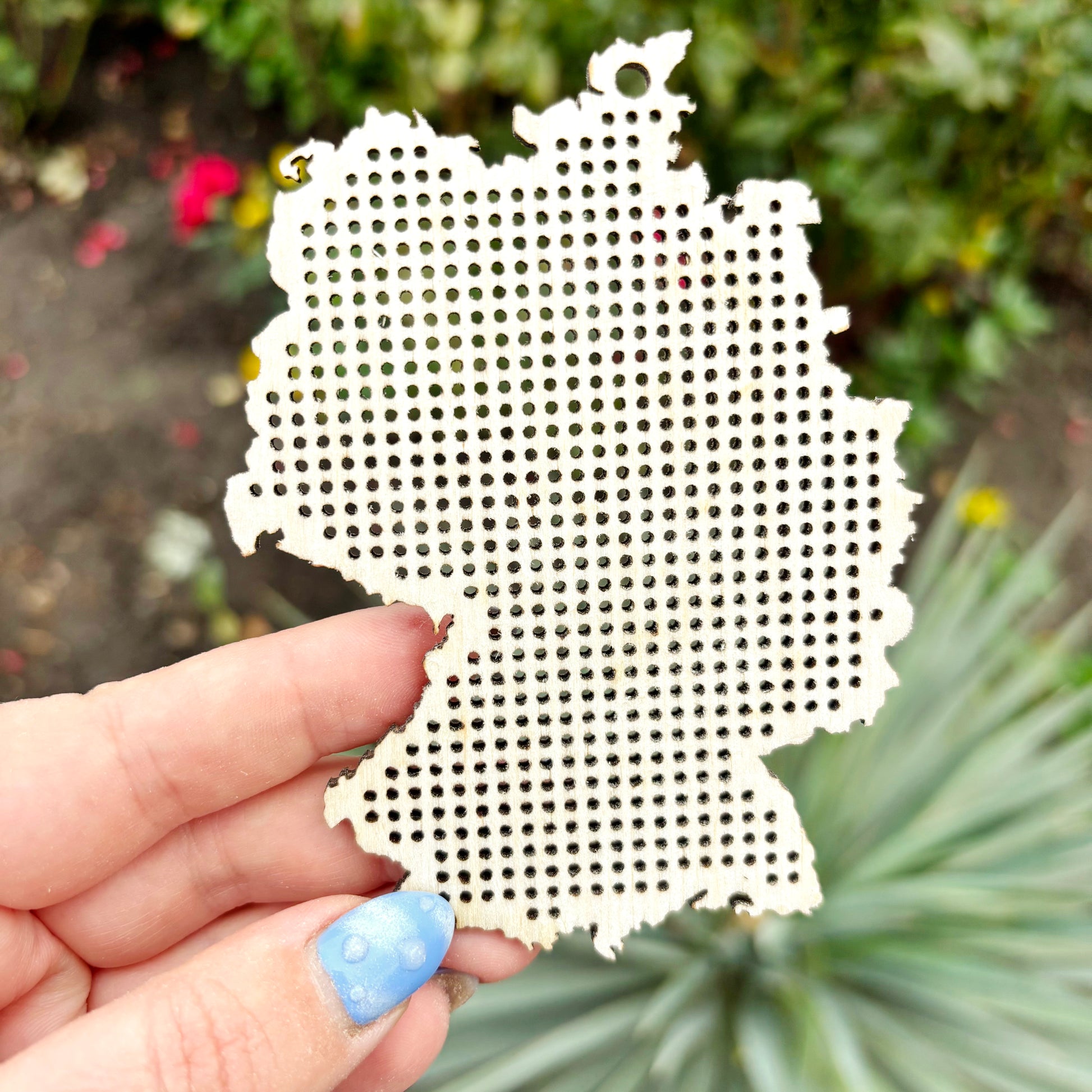 This cross stitch blank is cut in the shape of Germany and made from 3–4 mm thick birch plywood. Perfect for creative embroidery projects, DIY crafts, and personalized gifts. The wood is smooth and sturdy, making it easy to stitch through and decorate.