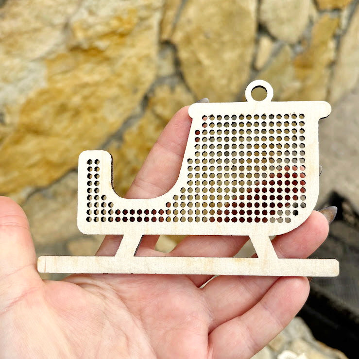 A set of large wooden Christmas cross stitch blanks, perfect for festive embroidery and handmade holiday decorations.