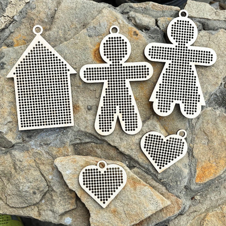 Wooden Cross Stitch Blanks Set – Large Laser Cut Ornaments