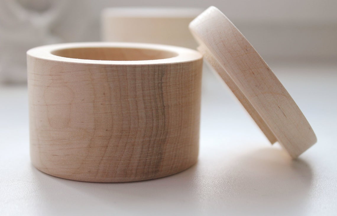 Small Wooden Box – 60 mm x 50 mm (2.4x2") – Handmade Alder Wood Storage Container for Crafts, Jewelry, Trinkets – Natural Round Wooden Box