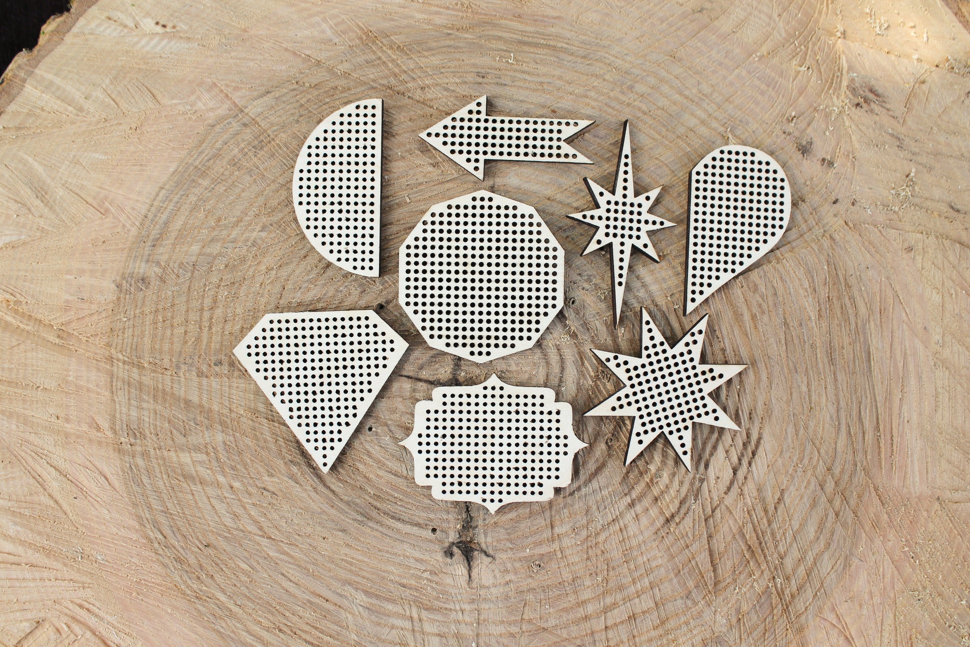Set of 8 Embroidery Blanks – Laser Cut Wooden Shapes for Stitching Projects - blanks Wood Needlecraft Pendant