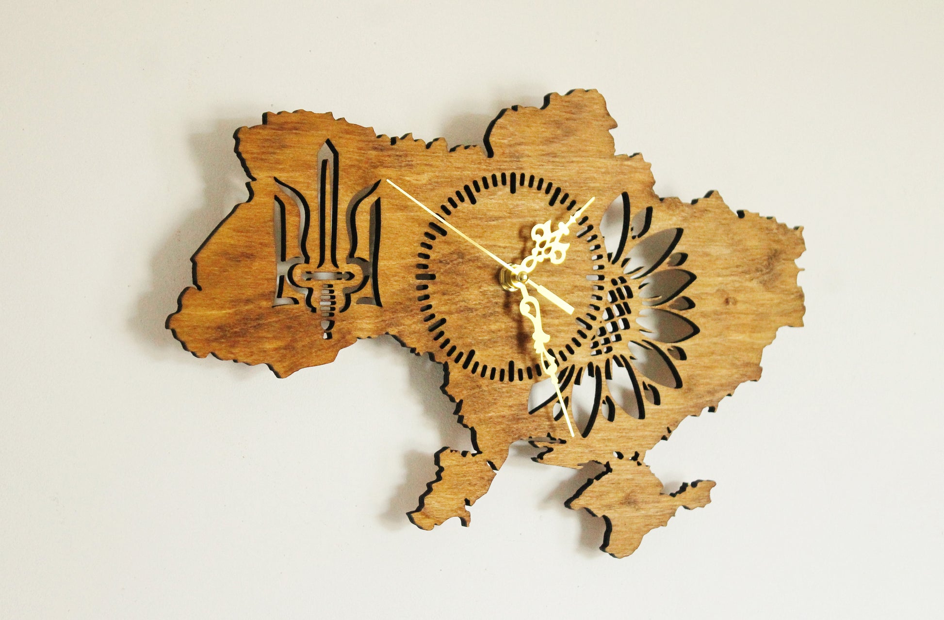 Celebrate Ukrainian identity with this unique handmade wall clock in the shape of Ukraine.