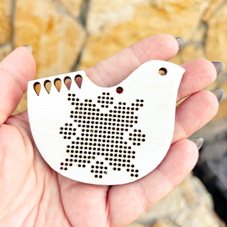Each ornament is laser cut from high-quality birch plywood (3–4 mm thick), featuring a neat perforated pattern that allows you to create your own embroidery designs.