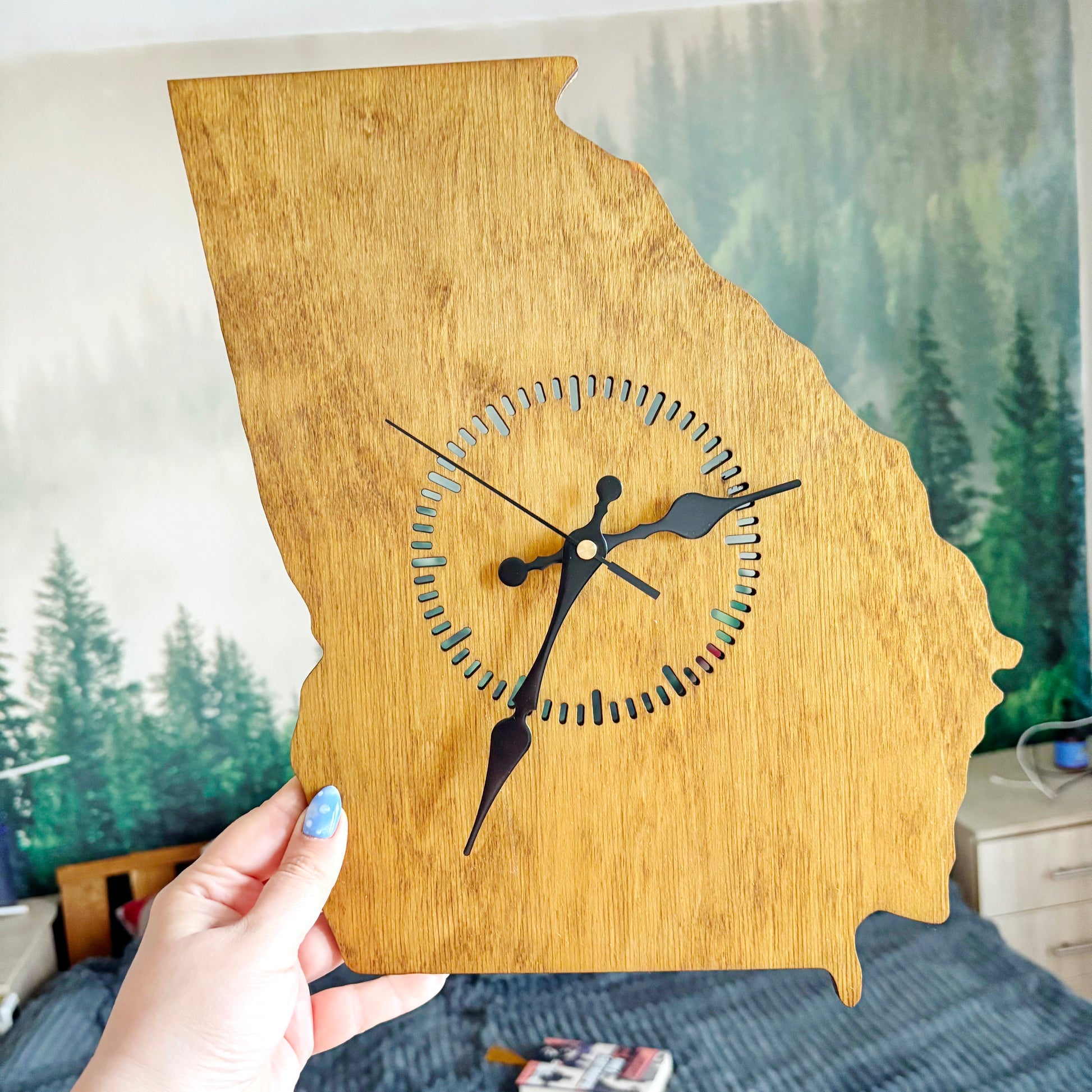 Wooden modern clock - Georgia - state - walnut wood color - 330 mm - 13 inches - handmade clock - Silent clock mechanism