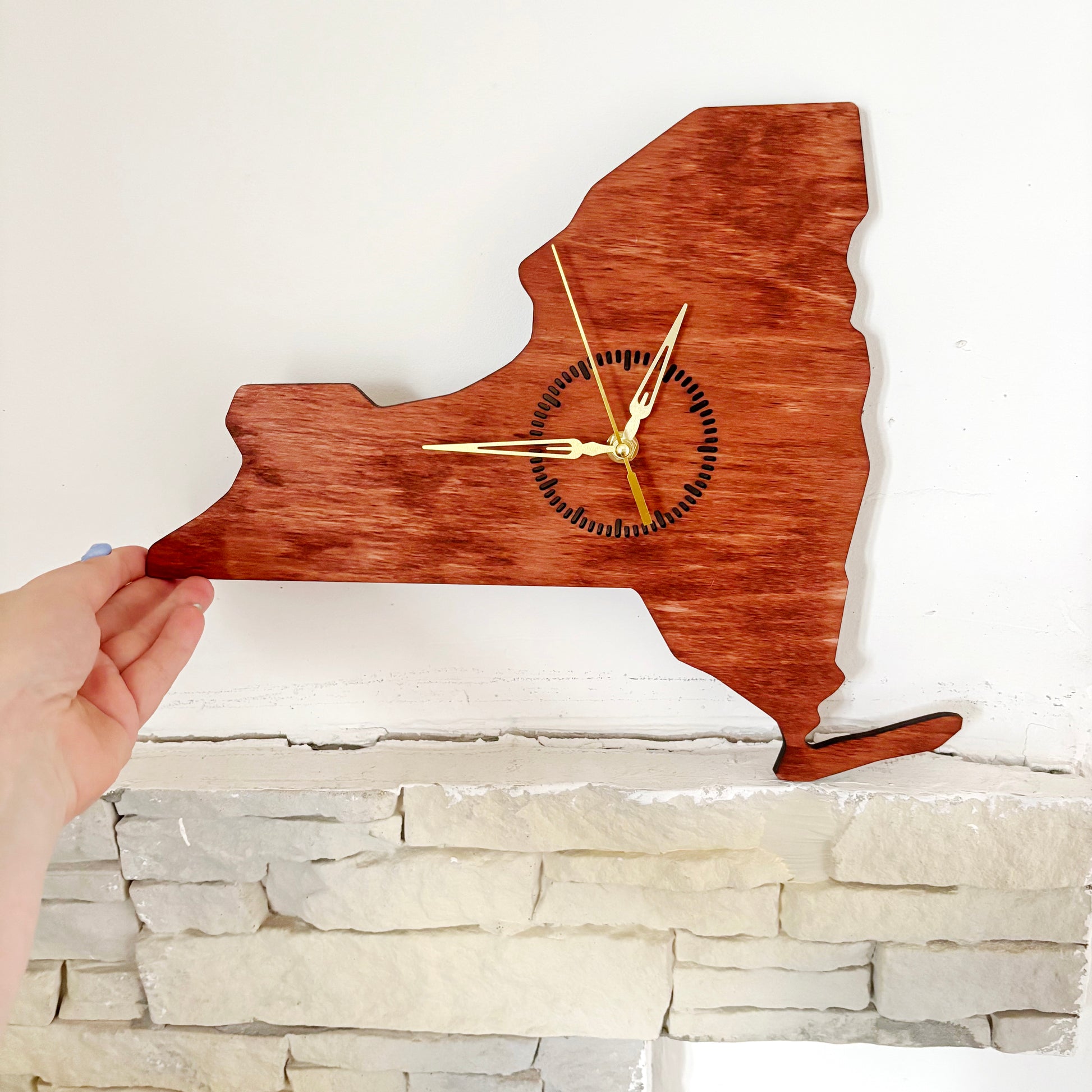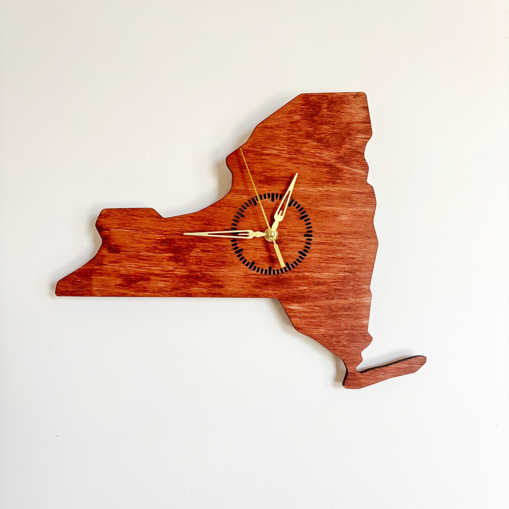 Wooden modern clock - New York - state -cherry wood color - 360 mm - 14.2 inches - handmade clock - Silent clock mechanism